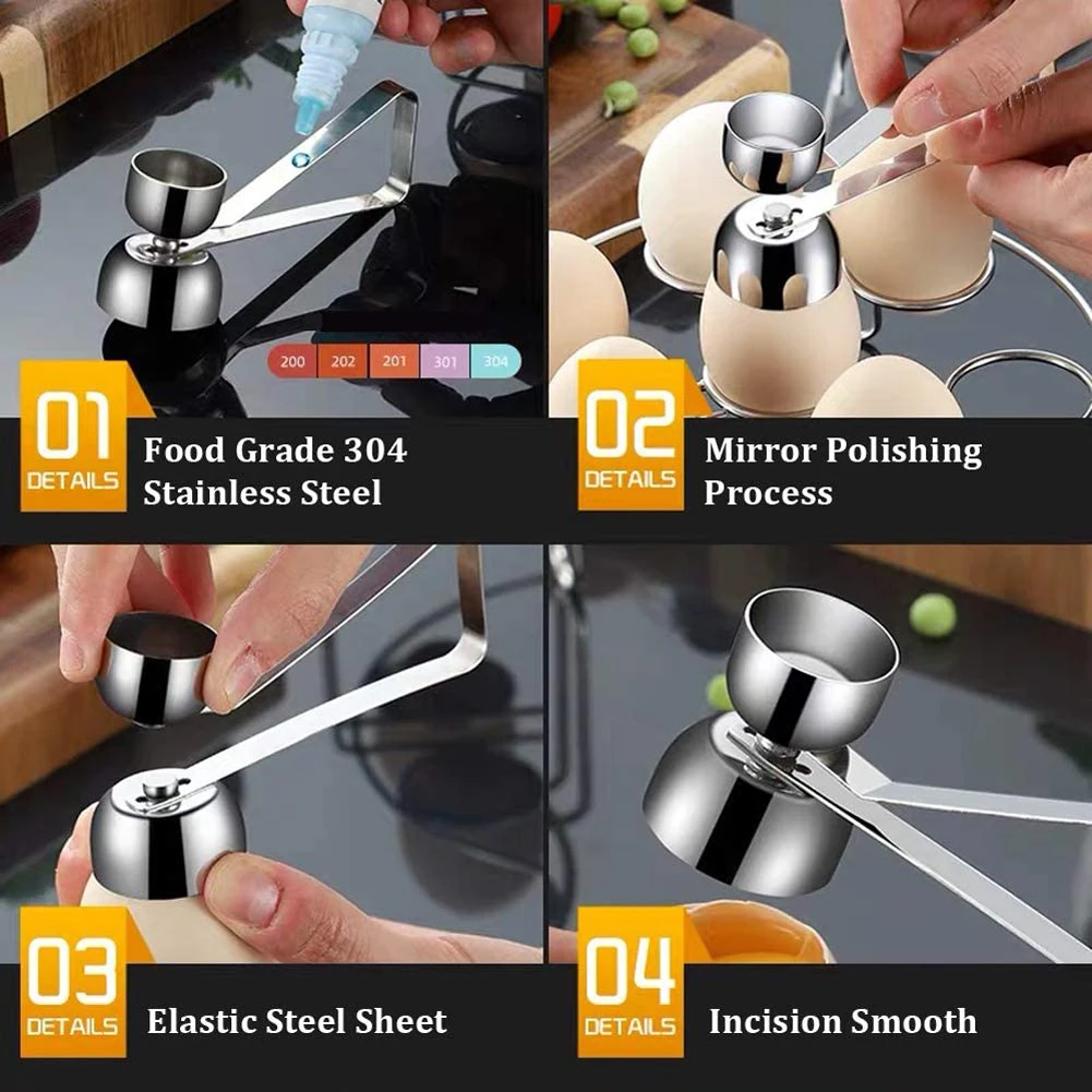 Tijeras de huevo de acero inoxidable cortador de Topper de huevo abridor de cáscara Acero inoxidable cocido crudo huevo abierto herramientas creativas de cocina